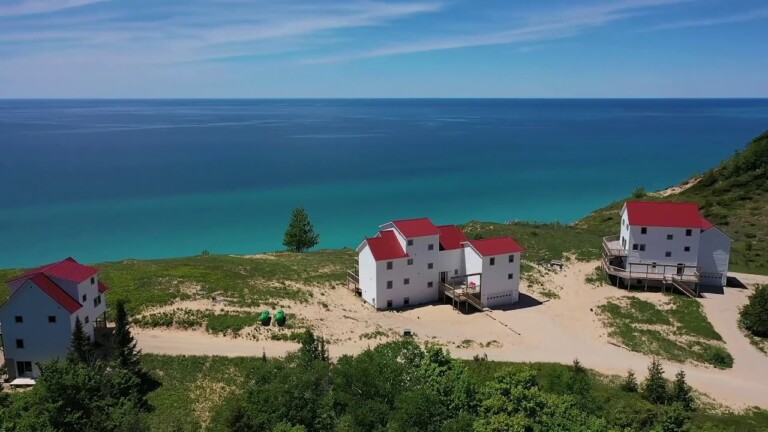 Benzonia Dome – A private, luxury dome nestled into the Michigan forest. Has a hot tub, sauna, cold plunge, fire pit, chef’s kitchen, and sleeps up to 4 guests.