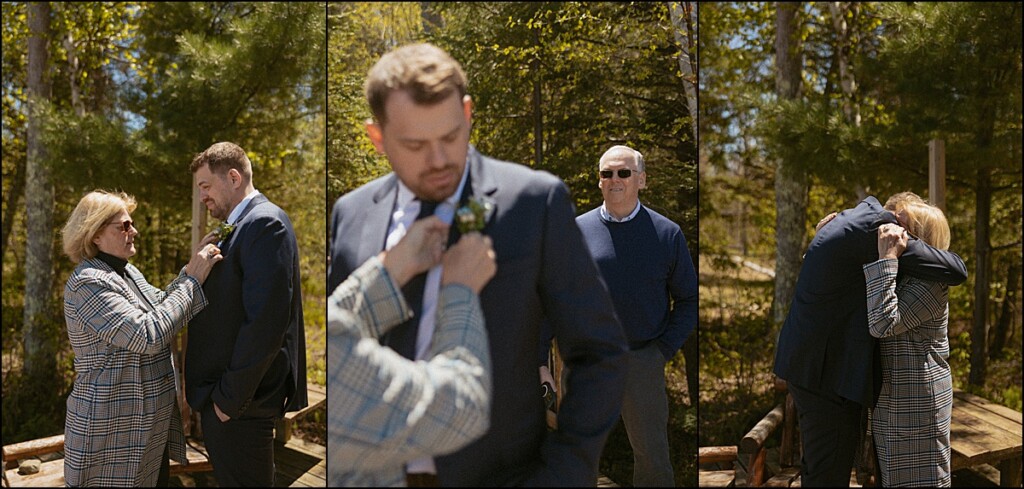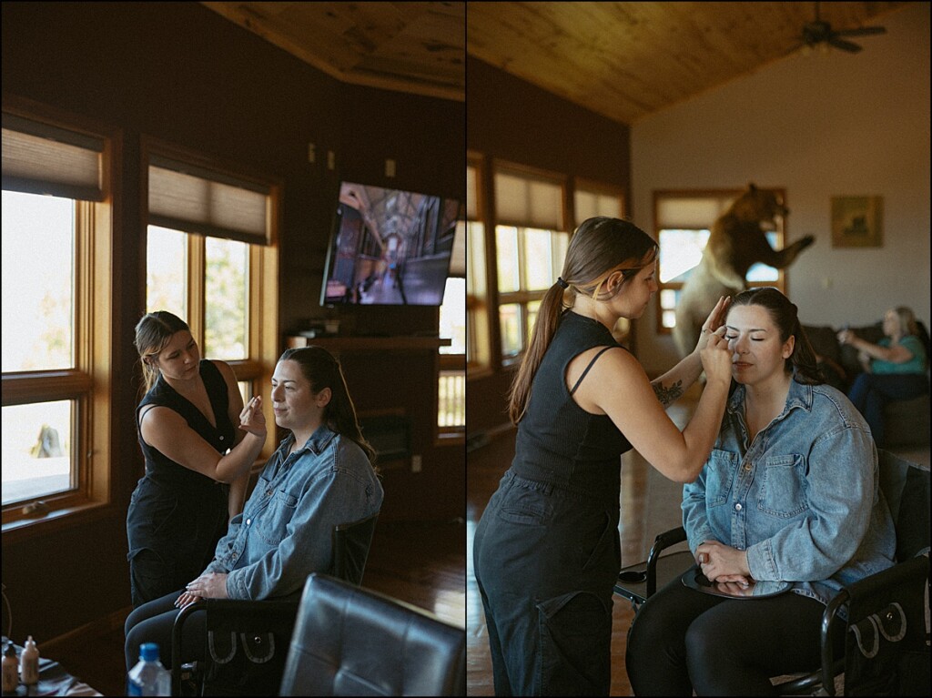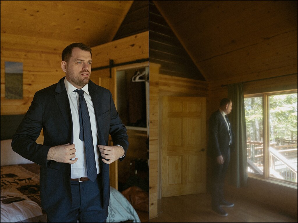 Tess + Curran chose to get ready separately so they could share a first look! They each got ready with their families, in some absolutely beautiful AirBnBs. The cabin that Tess + Curran stayed in is where they also did their first look at had their families over to celebrate later, and it was seriously one of my favorite AirBnBs I’ve ever been to!