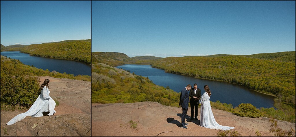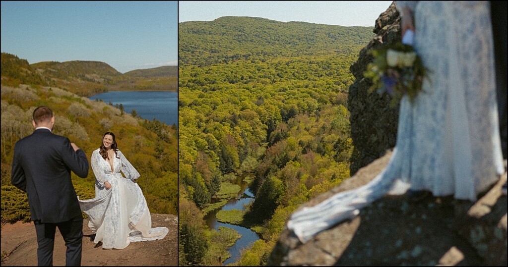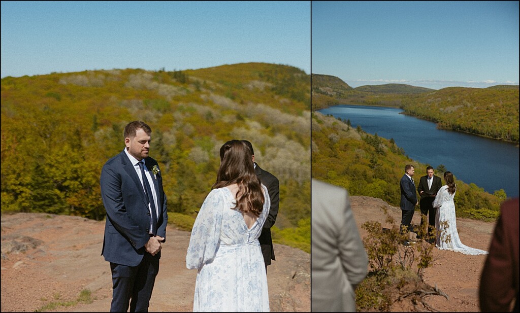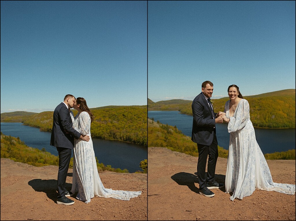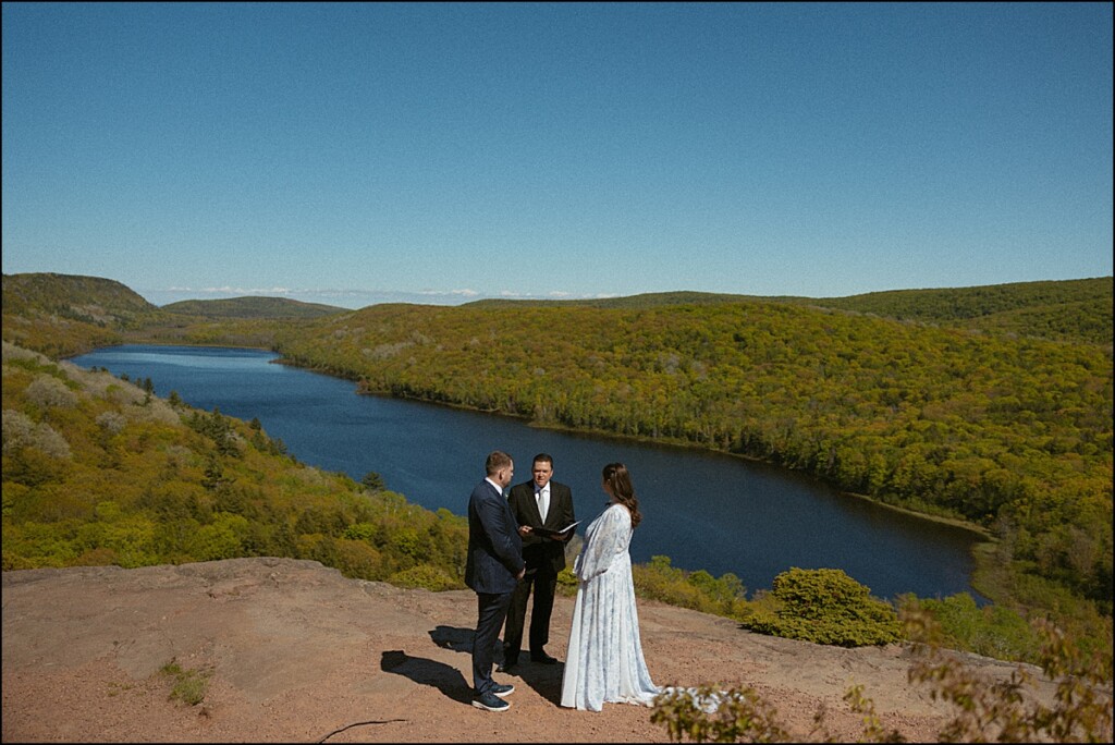 The ceremony could NOT have been more beautiful!! We hiked out to a gorgeous cliff overlooking the lake, where they shared their vows overlooking the Lake of the Clouds. This time of year ended up being so perfect – not too hot or cold, and before summer vacation started so we had almost the entire place to ourselves! If you are considering having a Porcupine Mountains elopement, late spring is an amazing time to have one!