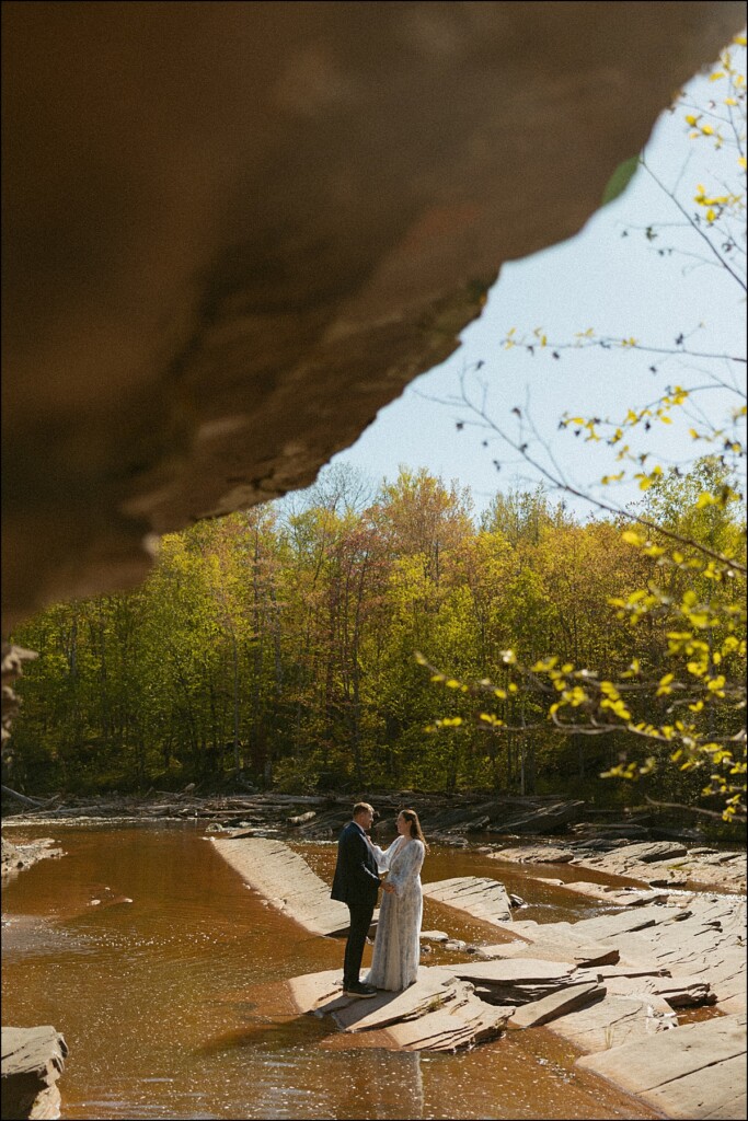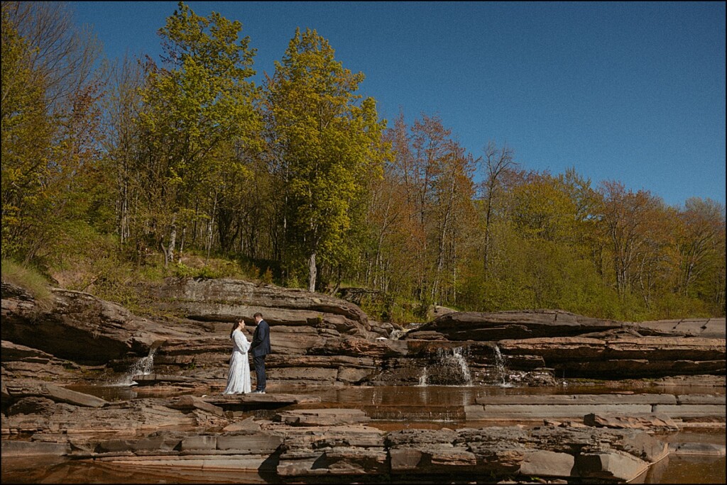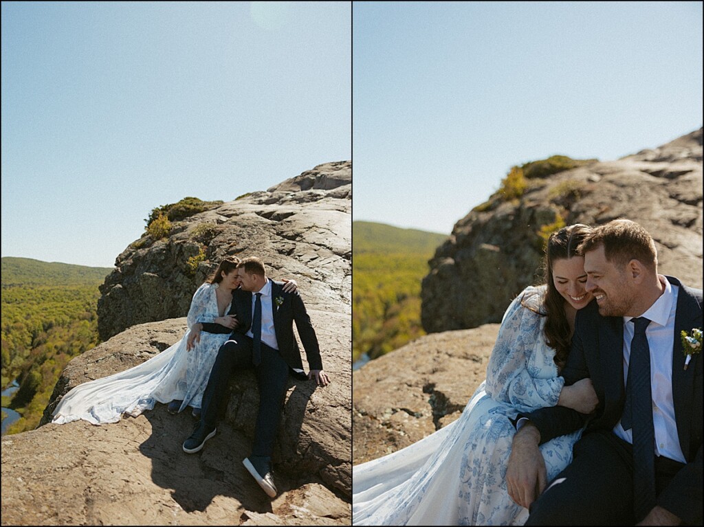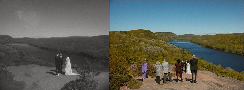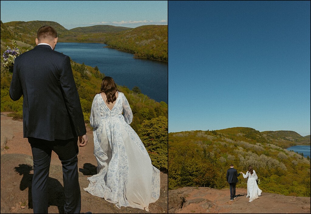 The ceremony could NOT have been more beautiful!! We hiked out to a gorgeous cliff overlooking the lake, where they shared their vows overlooking the Lake of the Clouds. This time of year ended up being so perfect – not too hot or cold, and before summer vacation started so we had almost the entire place to ourselves! If you are considering having a Porcupine Mountains elopement, late spring is an amazing time to have one!