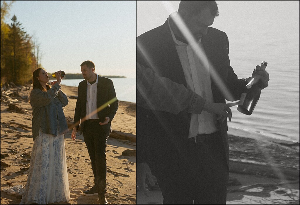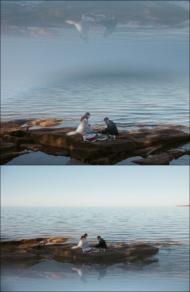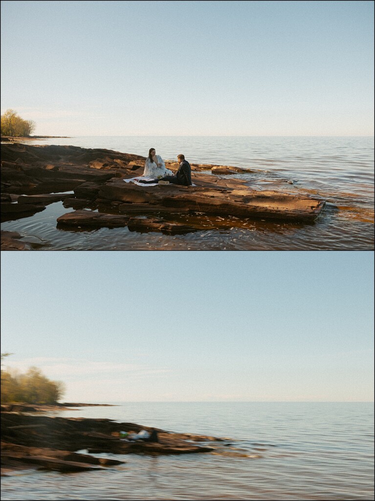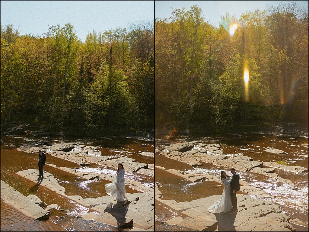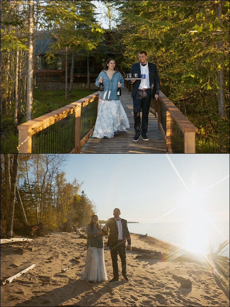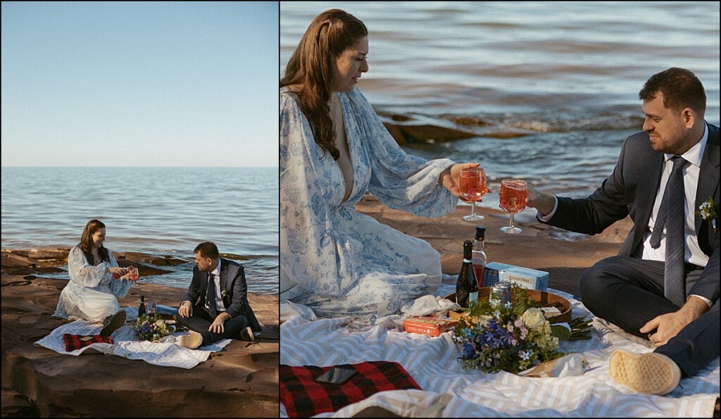 After the ceremony, Tess + Curran wanted to share a little adventure with just the two of them. We ventured out to a local waterfall, where we spent some time exploring and they exchanged private vows in front of the falls. We then wandered over to the Lake Superior shoreline for a picnic along the water, and a couple of rounds of uno! Adding experiences like that is one of the best parts about eloping. You can really make your day 100% your own, and do whatever you want!!